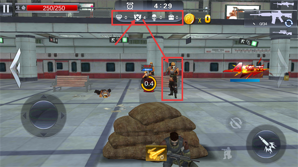2、战斗界面中,通过【移动按钮】操控角色,利用场景内【油桶】触发爆炸伤敌,留意【250/250】的生命状态维持战力。