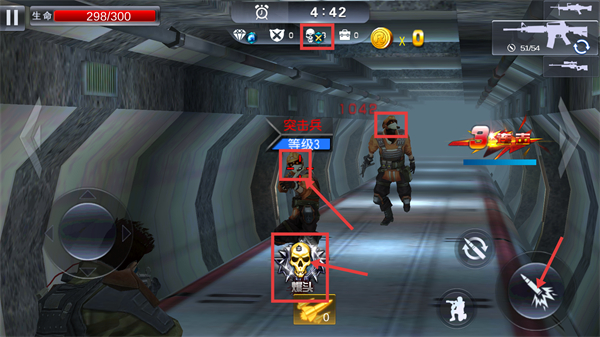 2、战斗中瞄准【突击兵】头部攻击,达成【爆头】可积累进度,同时留意【298/300】生命状态维持战斗。