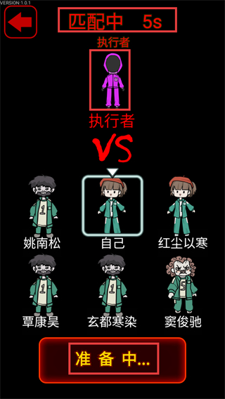 1、处于【匹配中-5s】阶段,己方为普通阵营对阵【执行者】,界面显示准备中,等待倒计时结束即可进入对局。
