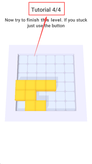 4、完成教程:在Tutorial4/4界面按提示完成关卡,若卡住使用帮助按钮。