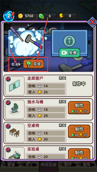 2、无广告专属初始福利,开局直接解锁1名稀有猛鬼与双倍建设资金,所有奖励无需观看广告即可一键领取。