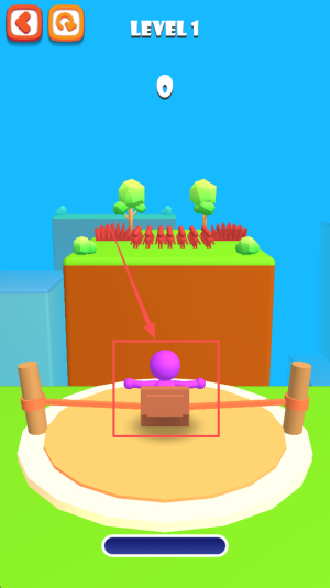 1、开启闯关准备:熟悉圆柱体转动操控逻辑,明确“助力橡皮人冲刺、击败对手、顺利通关”的核心目标。