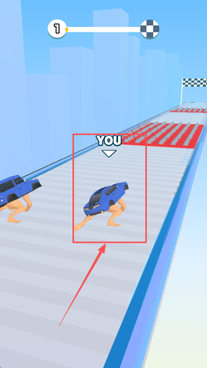 1、开启闯关准备:熟悉背负汽车壳的操控逻辑,明确“突破障碍、率先冲线”的核心目标,了解赛道规则。