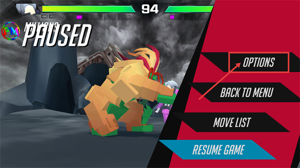 4、战斗进入【PAUSED】状态后,可通过【OPTIONS】调整游戏设置,也能选择【RESUME-GAME】回到对战继续作战。