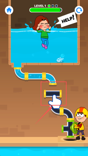 1、开启解谜准备:熟悉水管调整操作逻辑,明确关卡救援目标,了解水流通路的核心要求。