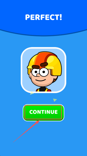 4、完成通关:当显示“PERFECT!”时,点击“CONTINUE”按钮,继续下一关挑战。