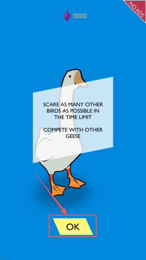 3、查看任务目标:阅读“在限时内尽可能吓跑更多鸟并与其他大鹅竞争”的任务,点击“OK”确认。