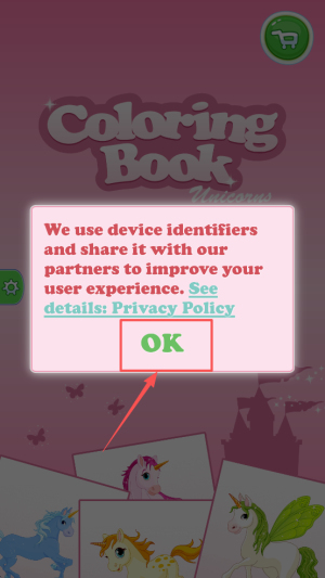 1、同意隐私:首先打开游戏主界面,阅读设备标识与隐私政策说明,点击“OK”接受并进入。