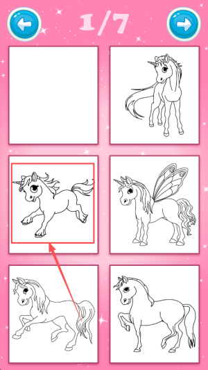 2、选择主题:在主界面中,可以看到“Mnicorns”主题,点击它进入独角兽涂色页面。