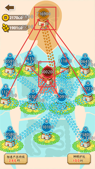 3、集中多据点兵力攻打500200兵力的核心据点,利用加速产出提升资源收益,同时向716900兵力的【大脑】据点集结兵力。