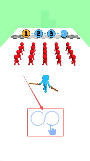 2、操控武器挥砍:拿起大刀等武器,精准操控角色向敌方火柴人发起攻击,凭借实力秒杀对手,推进闯关进程。