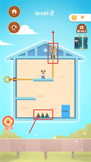 3、推进关卡时,待角色移动至下方区域后,及时调整拉环让角色靠近【Exit】门,避免停留触发危险元素。