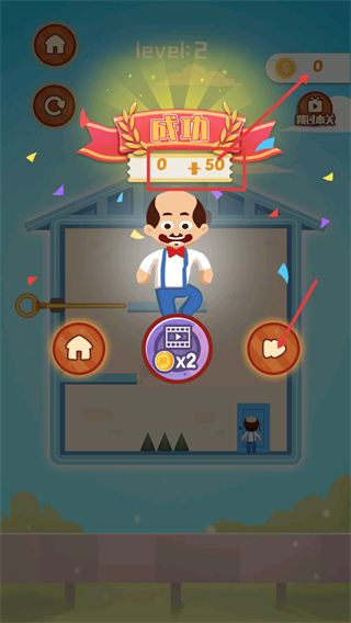 4、通关后将获得【0-+50】金币奖励,可通过【抽奖】功能获取道具,助力后续关卡的机关破解。