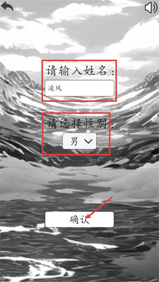 1、在姓名输入框填写名称,选择性别后点击【确认】,完成角色基础信息的初始设定。
