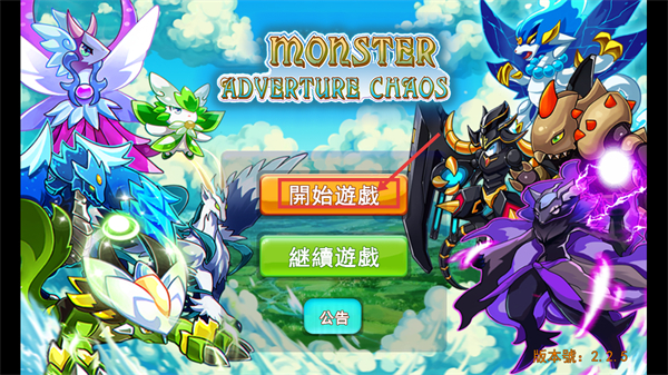 1、进入【MONSTER-ADVENTURE-CHAOS】游戏时,可选择【开始游戏】新建存档,或点【继续游戏】加载进度。