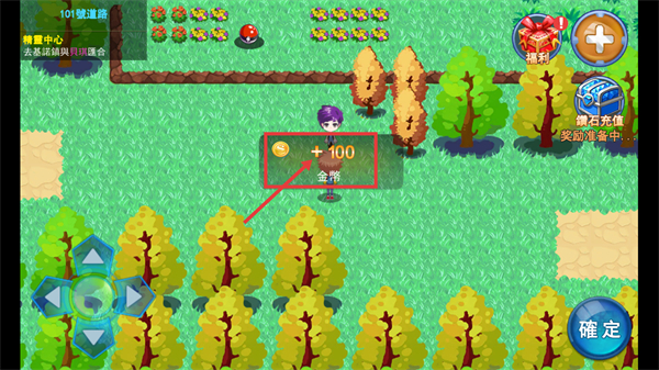 4、在地图场景中拾取【+100-金币】可积累资源,可前往【转蛋中心】等设施消耗金币获取道具。
