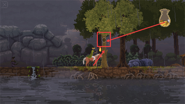 1、观察场景中【树-标记点】与【陶罐】的关联,通过操作角色移动至对应区域,触发物品交互。