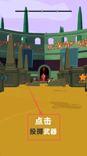 2、投掷武器:在关卡界面中,点击屏幕进行首次投掷,发射武器击中目标。
