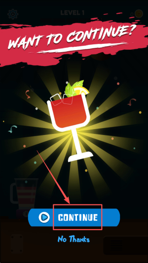 4、继续挑战:当界面显示“WANT TO CONTINUE?”时,点击“CONTINUE”继续下一关挑战。