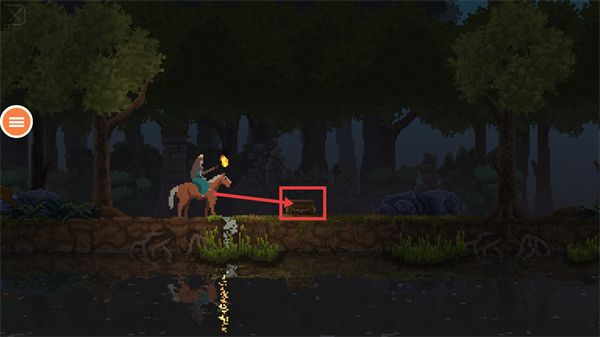 3、在夜晚场景中,借助【火把】光源找到【木箱】交互点,靠近后触发物品获取或场景推进的相关操作。