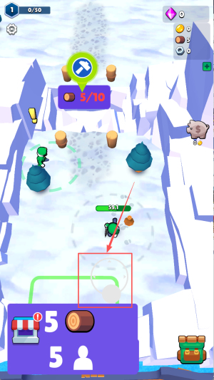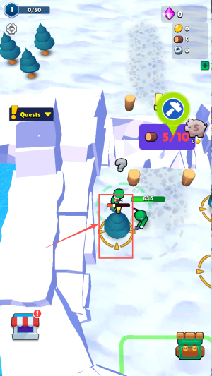 2、移动角色:在游戏地图中,通过点击屏幕来控制角色移动,按照箭头指示方向前进,收集地图上的资源。