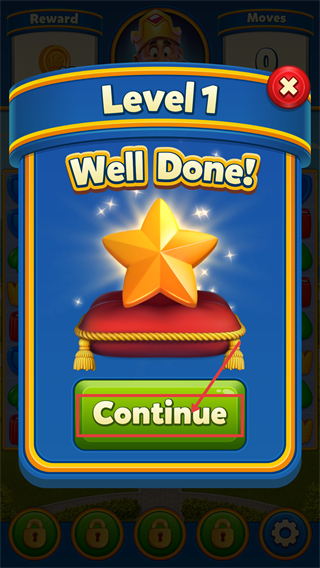 4、完成【Level-1】后,点击【Continue】按钮可领取奖励并进入下一个关卡。