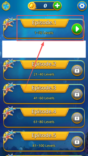 1、进入游戏:首先打开游戏主界面,浏览Episode.1至Episode.5,点击Episode.1进入1-20 Levels。