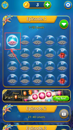 2、选择关卡:在章节界面中,点击Play Now!开启Episode.1,查看当前进度3与70颗宝石。