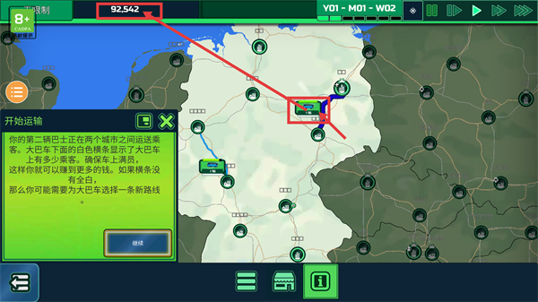 4、若大巴乘客少,可通过【为大巴选择一条新路线】调整线路,以此增加乘客数量,提升收益。