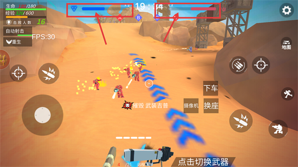 4、关注上方进度条,通过击败敌方(如摧毁武装吉普)积累优势,推进己方进度条提升对战胜率。