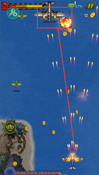 2、视觉表现效果出众,凭借竖版射击的独特视角,呈现出史诗级的空战场景,让玩家沉浸式感受激烈空战的震撼氛围。