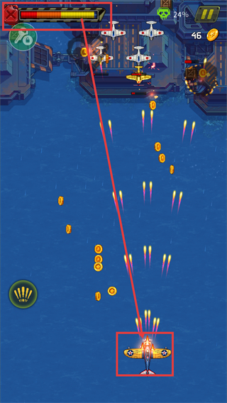 3、设计巨型超级Boss,敌人体型庞大到占据全屏,挑战时还需同步清除敌机随从,可体验子弹横飞的极致射击快感。