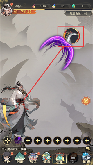 3、历练过程中,触发技能释放(对应界面标识)可提升战斗效率,助力快速通过【魔骨山脉-1-4】等关卡。