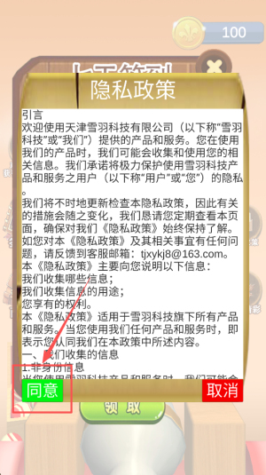1、同意政策:阅读隐私政策后点击“同意”再点“领取”进入主界面。
