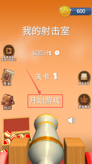 2、进入射击室:在主界面点击“开始游戏”按钮进入“我的射击室”。