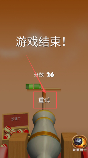 4、结束重开:游戏结束画面点击“重试”即可马上再来一局。