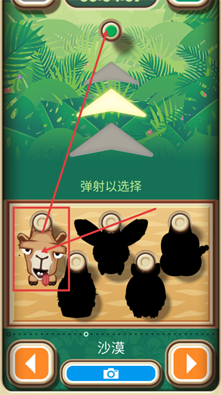 1、在【沙漠】主题中选择对应弹射角色(如骆驼形象),通过上方节点可开启该角色的弹射关卡。