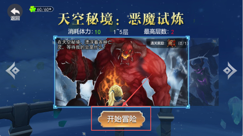 2、选择试炼:在游戏模式选择界面,点击“天空秘境:恶魔试炼”开始挑战。