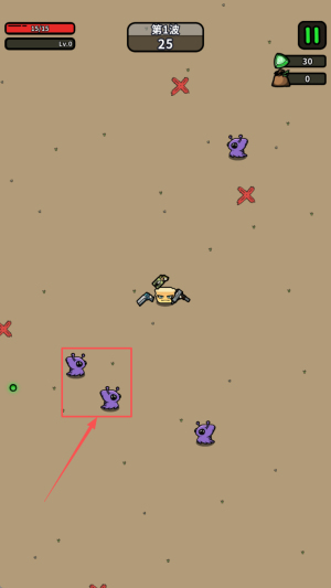 1、 进入游戏后操控方块脸特工在荒野地图移动,观察怪物分布,优先清理威胁大的敌人,避免被包围 。
