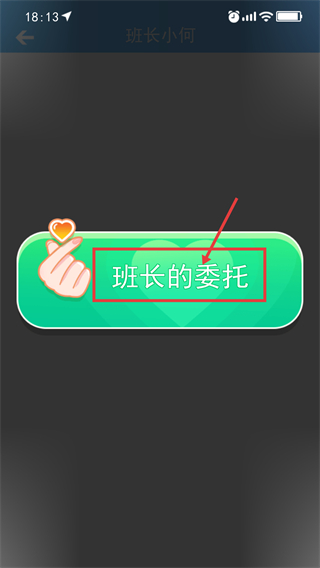 1、在【班长小何】界面中,点击【班长的委托】按钮可触发互动任务,这是推进角色关联的关键入口。