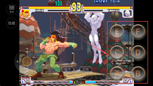 1、开始游戏:点击“投币”和“开始”按钮,进入游戏。