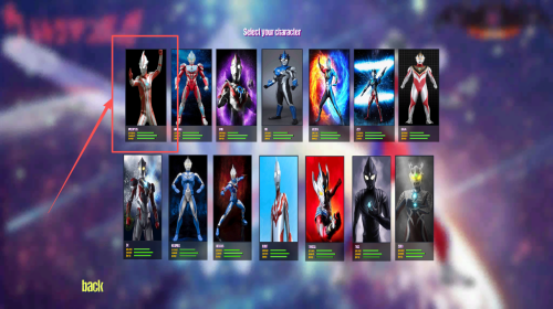 2、选择角色:在角色选择界面,点击选择你想要扮演的奥特曼角色。