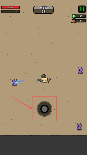 1、 进入游戏后操控方块脸特工在荒野地图移动,观察怪物分布,优先清理威胁大的敌人,避免被包围。