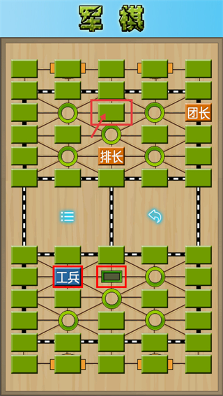 2、开局先操作【工兵】,利用其挖雷的特性,靠近敌方【地雷】区域,同时借助【排长】等棋子试探敌方兵力。