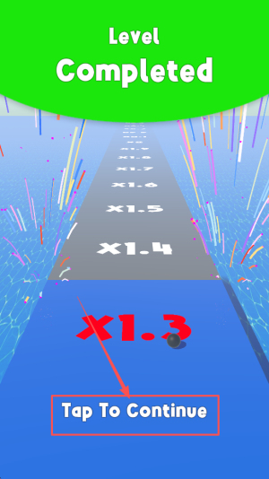 4、完成通关:出现“Level Completed”后点击“Tap To Continue”领取奖励。