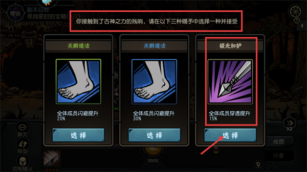 2、接触古神之力残响时,选择【极光加护】可让全体成员穿透提升15%,适配需要破防的战斗场景。