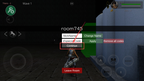 3、加入房间:在多人模式中,输入房间号或特定代码后点击“Continue”加入游戏。