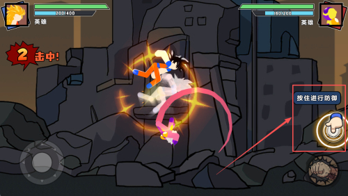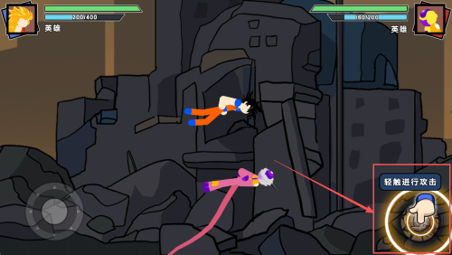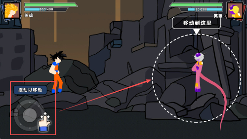 2、移动角色:通过左下角的虚拟摇杆推动以移动角色,靠近敌人。