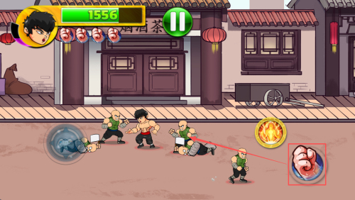 2、 对战时用触摸控制操控角色移动、出拳、踢击,面对敌人攻击及时闪避,抓住间隙发起反击 。