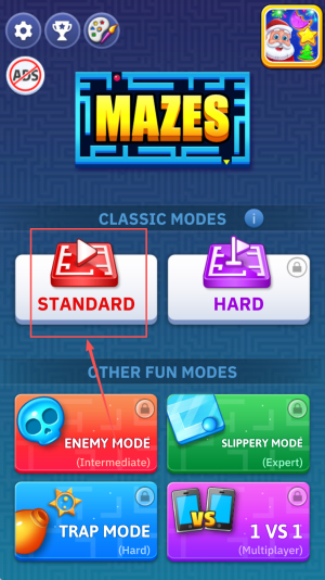 2、选择模式:在“MAZES”界面选择“CLASSICMODES”下的“STANDARD”难度。